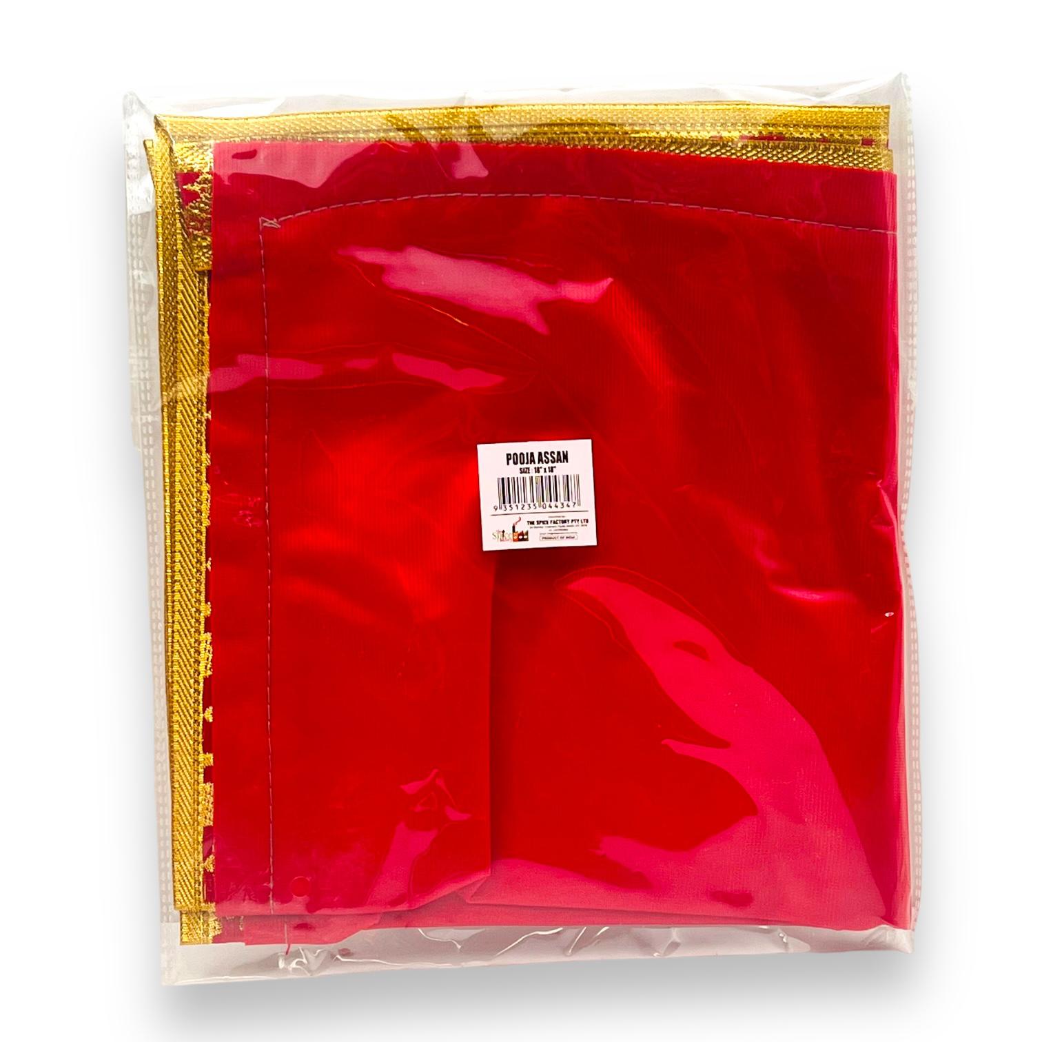 Pooja Aasan/ Assan Velvet Cloth Red with Gold Lace/ Size: 18'' x 18'' for Chowki- 9351235044347
