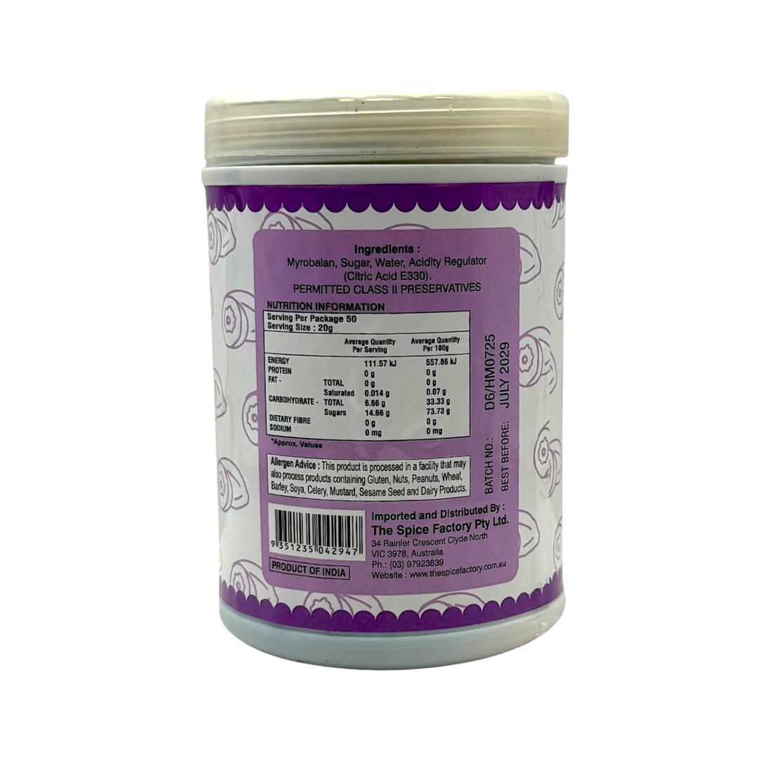 The sweet and slightly sour taste of Harad Murabba makes it a popular dessert or snack in Indian households. It can be eaten on its own, with yogurt, or used as a topping for various Indian sweets and snacks. It's also considered a great palate cleanser.