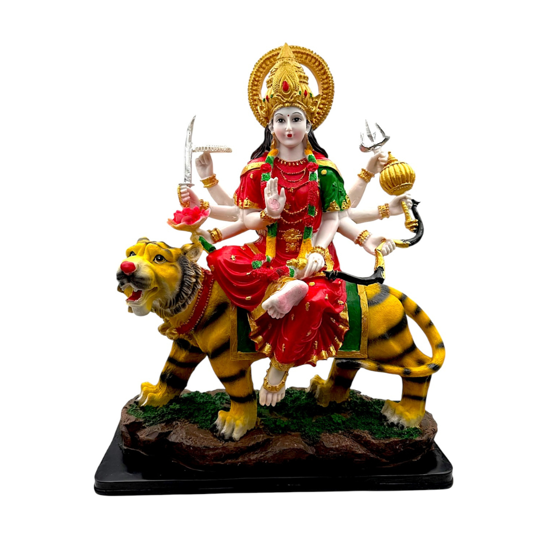 Invoke the power, courage, and divine energy of Maa Durga with this grand idol, featuring the goddess seated on a majestic tiger in a warrior pose. A sacred symbol of victory over evil and protection, this idol is perfect for temples, home mandirs, and festive décor.