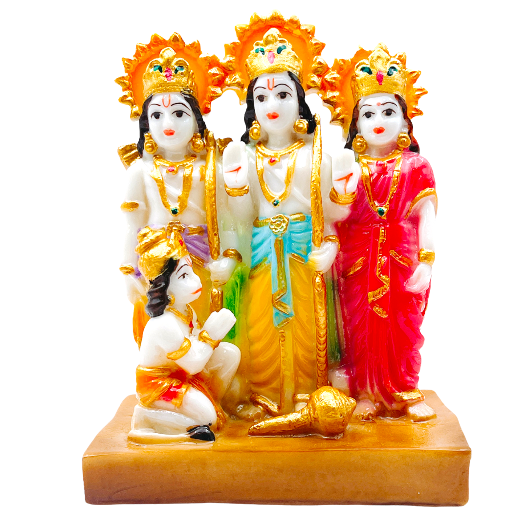 ✔ This idol of Lord Rama, Laxman, Sita, and Hanuman is carved from clay and stone.