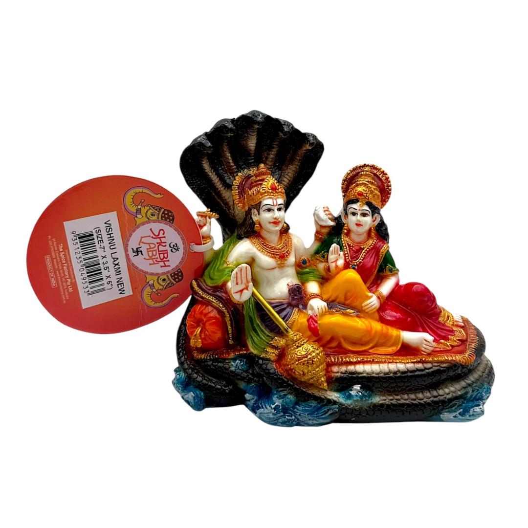 Bring home divine blessings of prosperity, protection, and harmony with this exquisitely detailed Vishnu Laxmi Idol. Lord Vishnu, the preserver of the universe, is seated alongside Goddess Laxmi, the deity of wealth and abundance. Together, they symbolize balance, fortune, and well-being in your home.