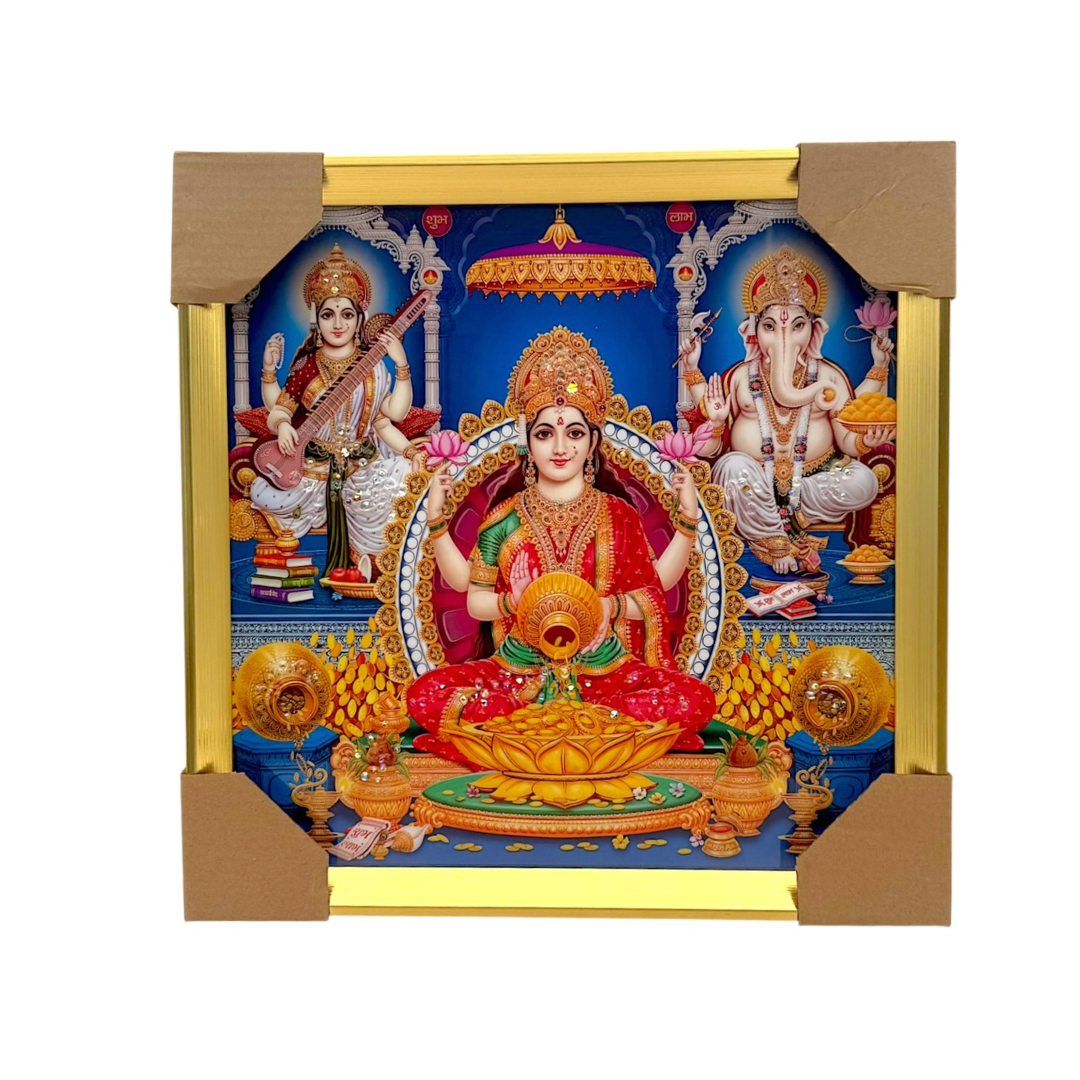 Lakshmi Ganesh Saraswati Photo Frame – Divine Blessings in Blue 33*33CM (13*13) | Decorative Painting - JC333311-5 - 9351235056890