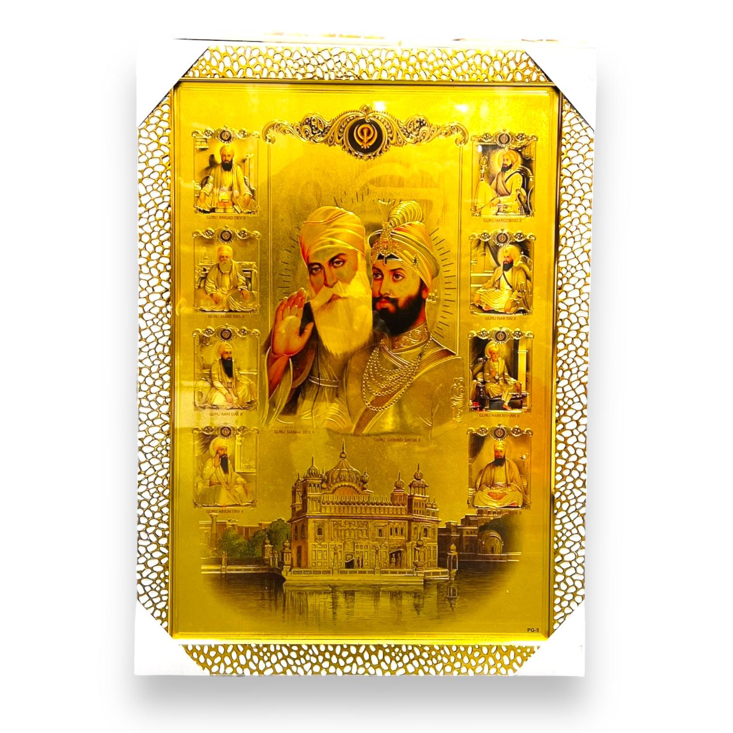Photo Frame Golden Temple with Ten Guru BA- (SIZE- 16x 24)- Golden- 9351235048987