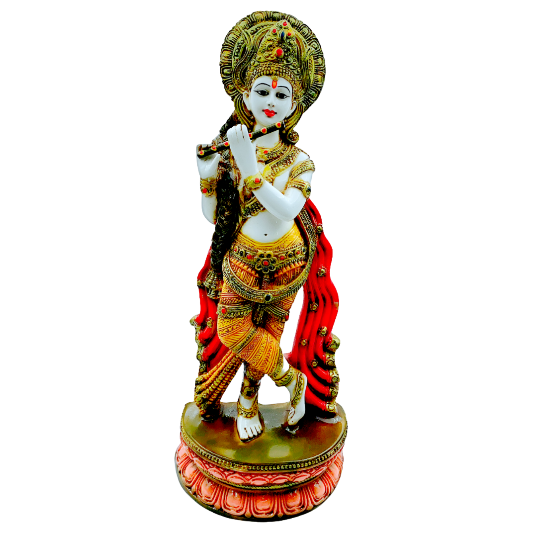 A standing Krishna idol statue is a representation of Lord Krishna, one of the most revered deities in Hinduism. This statue is crafted with great attention to detail and artistic finesse, capturing the divine essence and grace associated with Lord Krishna.