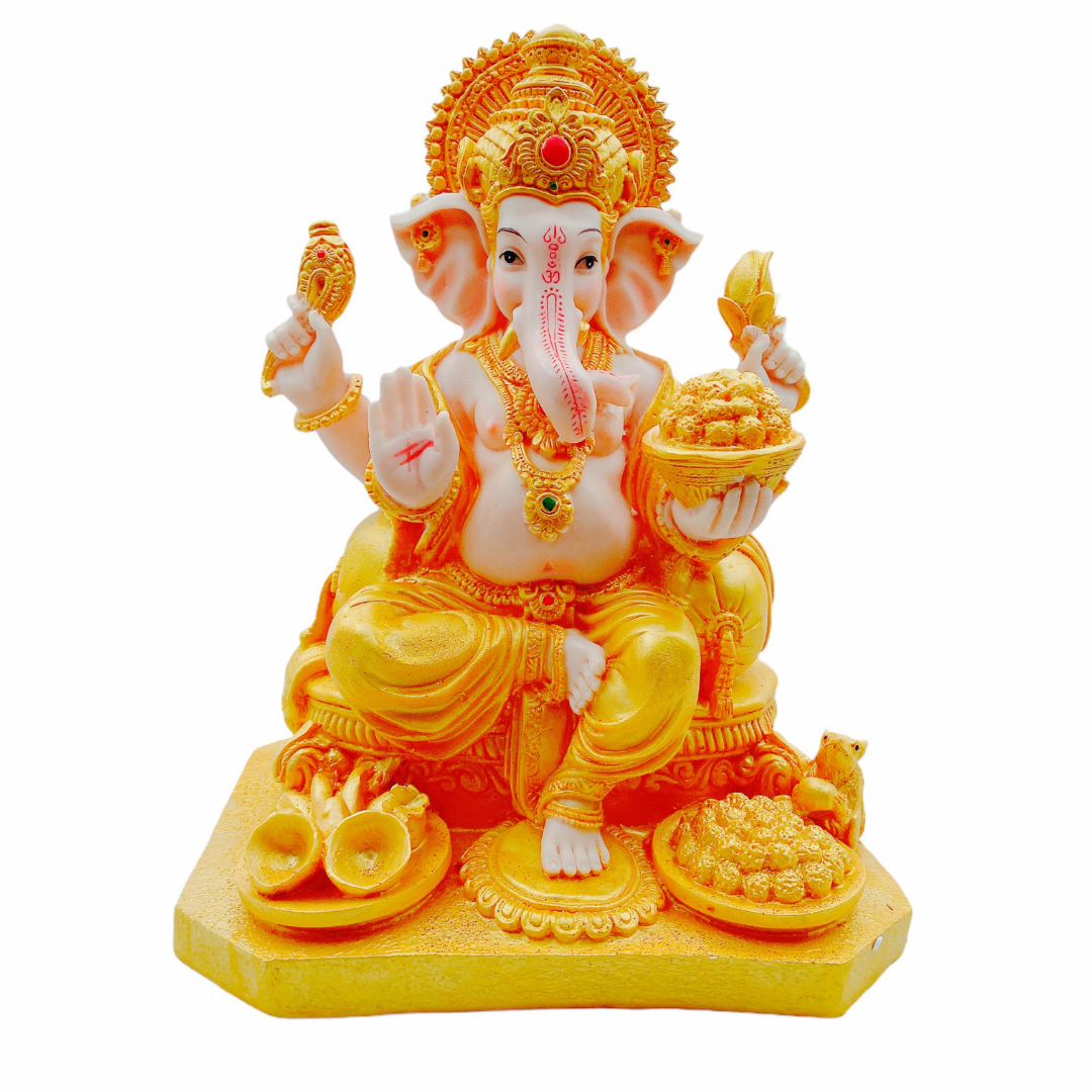 Lord Ganesha is the remover of obstacles. The gold-painted Ganpati idol helps create success, removes negative energies, brings good luck, and leads to achievement in tasks. It also takes away stress and misfortunes. Ganesha, a Hindu deity, is worshipped as the Lord of Success. He is also known as Vinayaka, Vigneswara or Ganapati. He is considered a remover of obstacles; he can bring good fortune and prosperity.