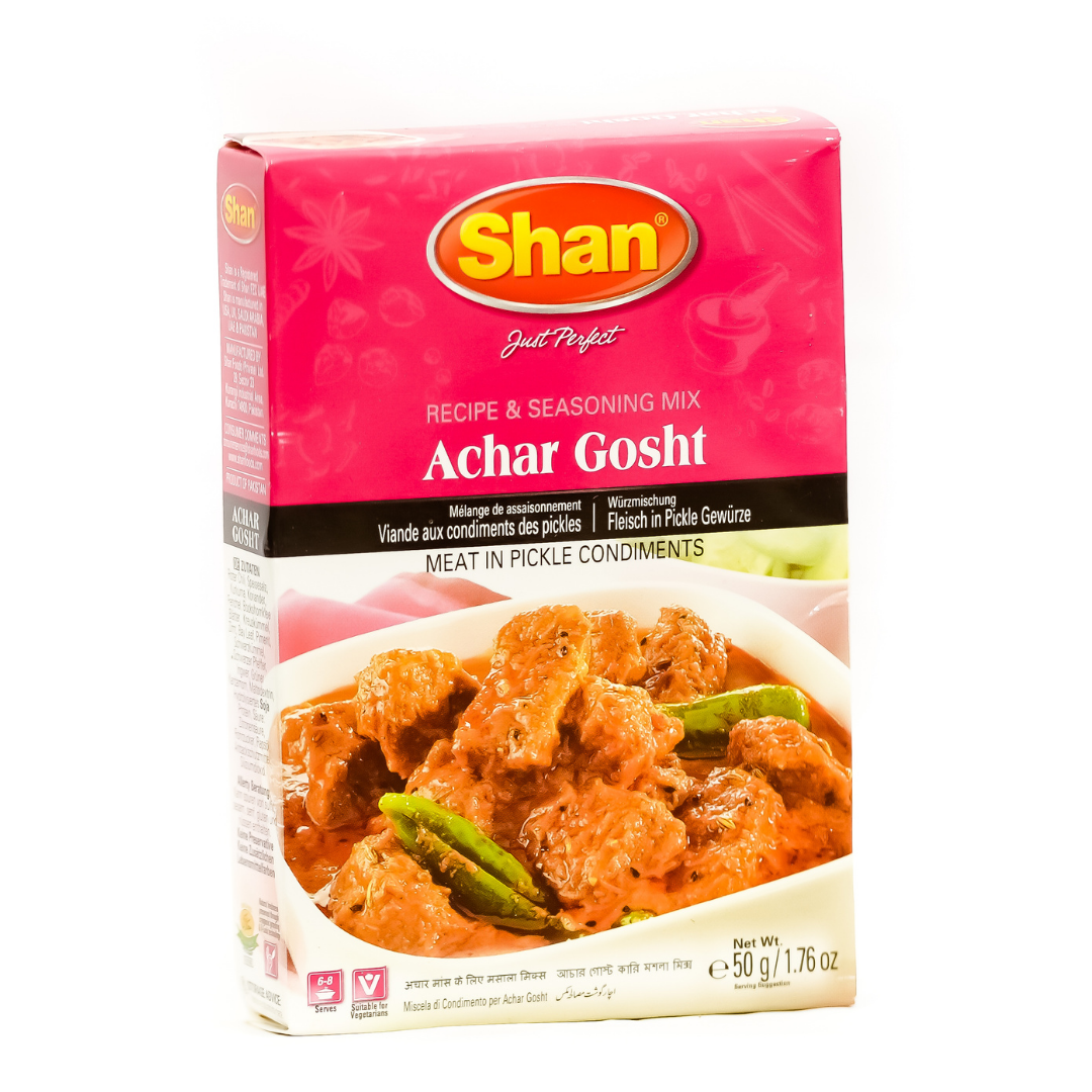 Treat yourself to the authentic flavor of Pakistani cuisine with Shan Achar Gosht Curry Masala Masala. Blended from an exquisite combination of the finest herbs and spices, this blend can be used for Karahi Achar Gosht. For the perfect karahi achar gosht every time, look no further than Shan Achar Gosht Curry Masala Masala. Our unique blend of carefully selected herbs and spices will give your dish a delicious aroma and flavour.