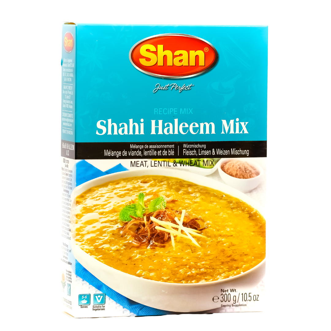 Shan Shahi Haleem Masala is an exquisite blend of exotic whole spices and wheat, specifically prepared for the preparation of Haleem. Shan Shahi Haleem Masala is a versatile spice mix that can be used in many other cuisines as well and is perfect for making dry or wet curries or rice dishes. Shan Shahi Haleem Masala is a blend of exotic whole spices including ginger, cinnamon, cloves, nutmeg, green cardamom, bay leaves, coriander seeds, and cumin seeds which are cooked together in vegetable oil to extract the flavor and aroma of each spice.
