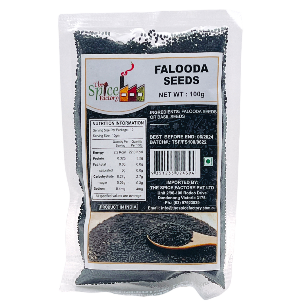 Basil seeds are the seeds of the Holy Basil plant which is used in many Asian and Indian dishes. Basil Seeds are also known as Falooda seeds and can be used to make falooda drinks with milk, syrup, ice, and rose water or as a topping for desserts such as ice cream or cake.