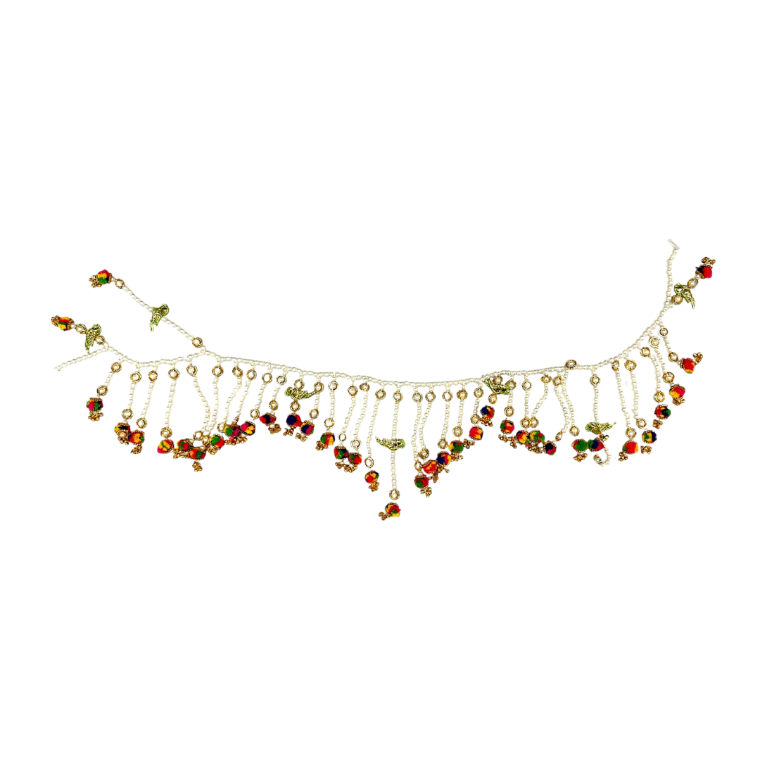 Handicrafted Vandanwar Pearl Toran – With Colourful Pom-Poms & Leaf Charms (Style No. 3)