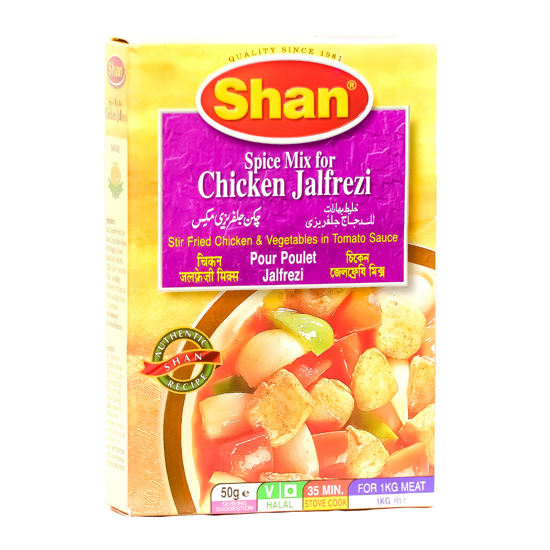 The spices are lightly fried before adding the tomatoes and other ingredients which give it an amazing flavor that can be tasted in every bite! Ingredients: Freshly cut tomatoes Onion Green bell pepper Ginger root Garlic cloves Coriander powder Cumin seeds Fenugreek leaves Paprika Green chili peppers.Shan Chicken Jalferazi Masala is a mouthwatering dish of fresh chicken in a spicy sauce, enhanced with tomatoes and green peppers, and served on a bed of rice. It tastes so good, you'll want to make it your go-to dish for all your chicken cravings!