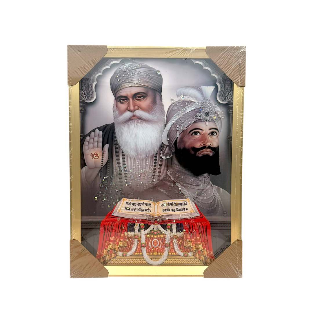 Product Name: Sikh Gurus Photo Frame – Guru Nanak Dev Ji, Guru Gobind Singh Ji & Guru Granth Sahib