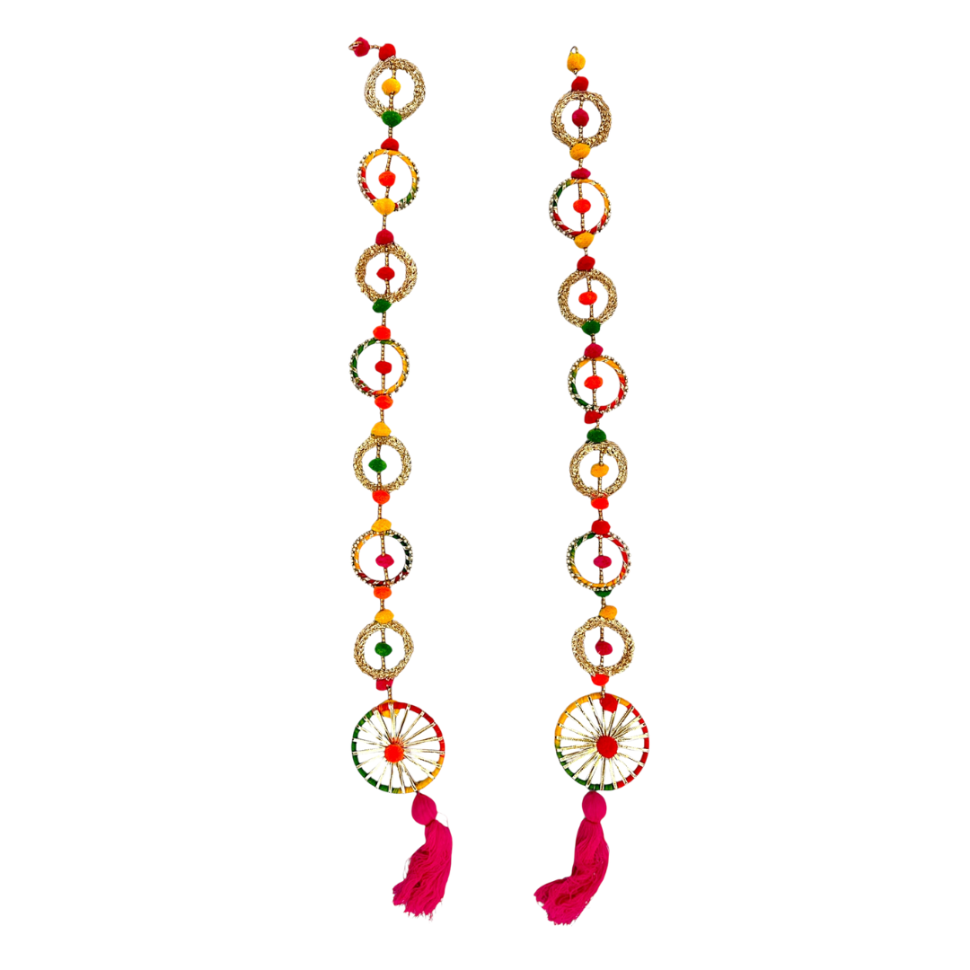 Traditional Swastik & Wheel Design Toran with Multicolour Pom Pom Garland/ Toran Door Hanging Wandhanwaar/ Latkan for Decoration (Set of 2) (Style No 2)- 9351235058542